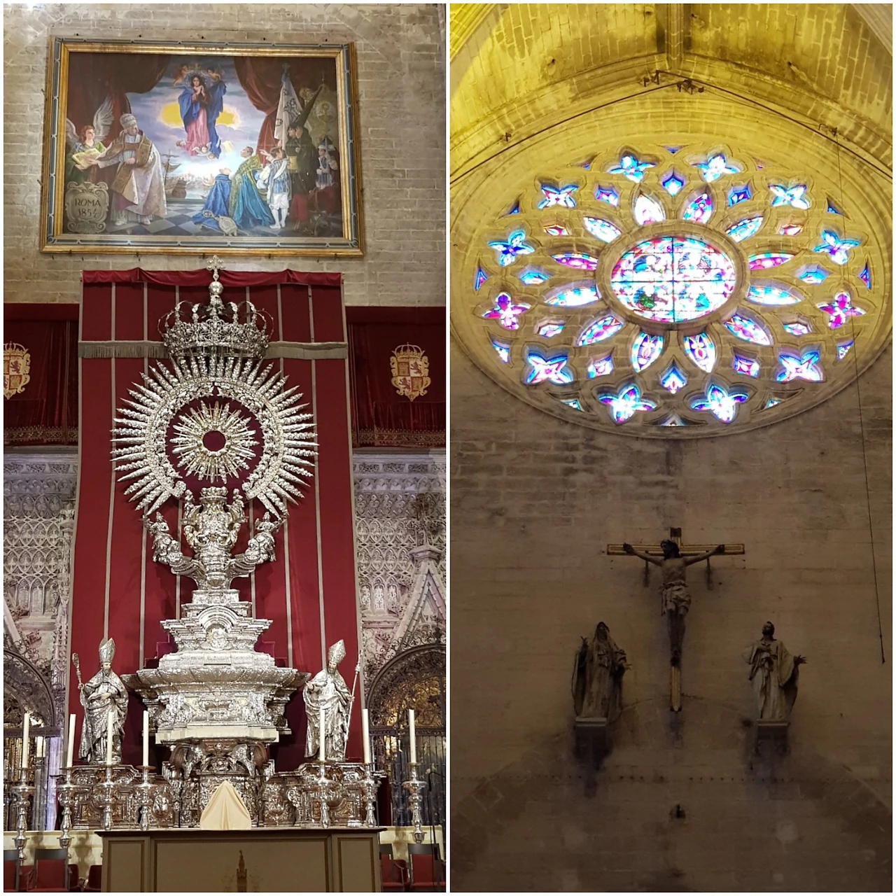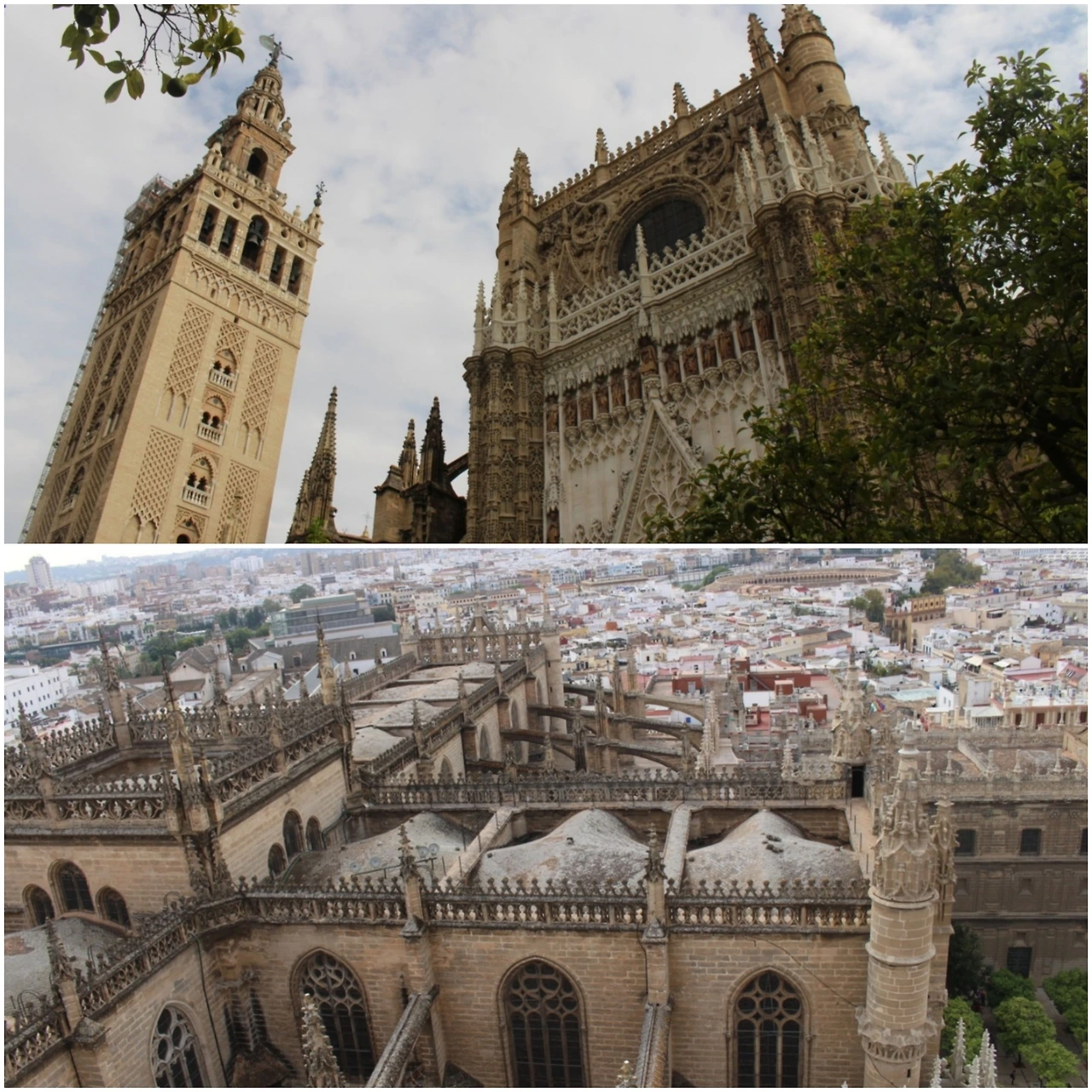 시내에 우뚝 서있는 세계 3대 성당에 속하는 세비야 대성당은 크기와 화려함에서 놀란다. 내부에는 세비야를 아랍인으로부터 탈환한 왕을 비롯하여 중세 여러 왕들이 안치되어 있고, 콜럼버스의 묘가 있다. 7세기에 침입한 아랍인에게 스페인의 남부지역을 빼앗기고 북으로 밀려서 세운 에스파냐 4 왕국. 레온, 카스티야, 나바라, 아라곤을 상징하는 조각상이 콜럼버스의 관을 떠받들고 있다. 지난번에 왔을 때는 만지면 복이 온다고 해서 다들 조각상의 발을 만져 반들반들하더니만, 지금은 만지려고 시도하는 사람들이 없었다. 그 외에도 우리에게는 김태희가 광고를 찍어서 김태희 광장으로 잘 알려진 곳으로, 1929년 세비야 무역박람회 개최를 기념하기 위해 세운 스페인 광장, 히랄다 탑, 마리아 루이사 공원 등 많은 관광지가 있다. 4년 전에 남미에 가기 전 Stop over로 5일 머물면서 세비야를 기록한 것이 있어 상세한 것들은 생략하고 몇 장 사진만 올린다.