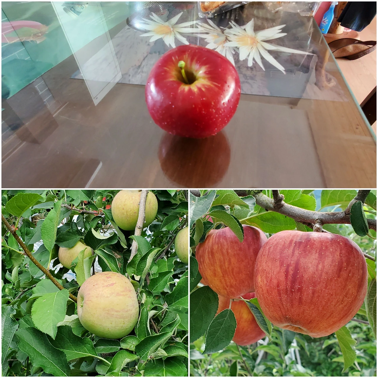 사과도 여러 품종이 있다. 여름에 수확하는 푸른 사과 아오리, 9월 상순에 수확하는 홍로는 주로 추석 선물용으로 판매한다. 문경에서 개발되었다는 감홍은 신맛이 적고 단맛이 높은데, 10월 10일경에 수확한다. 11월에 수확하는 가을 사과 후지는 사과 전체 수확량의 70%를 차지한다. 신맛과 단맛이 적절히 조화를 이루는 후지는 전 세계의 과일가게에서 비교적 비싼 값으로 판매되는 대표적 사과 품종이다. 이외에도 700여 종의 사과 품종이 있다고 하나, 누이 과수원에도 상기 4종류의 사과가 자라고 있다. 물론 후지 사과가 70%를 차지한다. 단 한 그루뿐인 소형 사과 품종인 루비에스는 유난히 빨갛게 달라 올라 있다. 이번 주말 동안 홍로 60여 박스를 따서 문경 사과 공판장에 냈다.