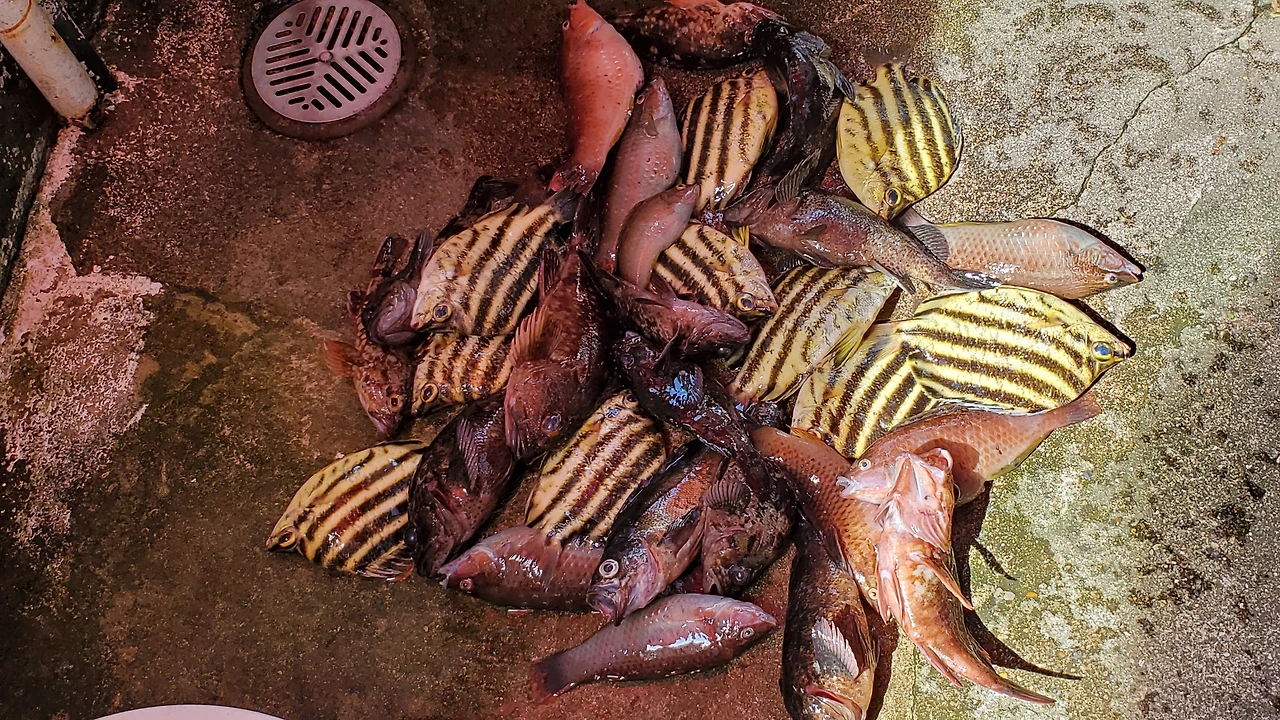 범돔, 게르치, 술벵이, 볼락 등 다양한 어종이 물려