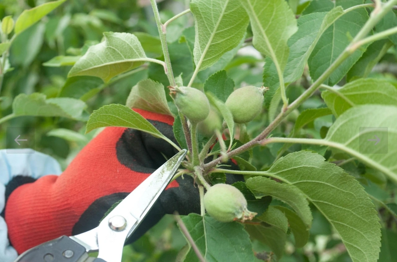 사과 과수원의 일은 연중 이어진다. 겨울철 가지치기는 나무의 성장을 촉진하며 더 좋은 품질의 사과를 생산하게 한다. 나뭇가지 사이에 공간을 넓혀 그늘을 없애고 햇빛이 들게 하고 나뭇가지의 전체 골격을 바르게 유지시킨다.