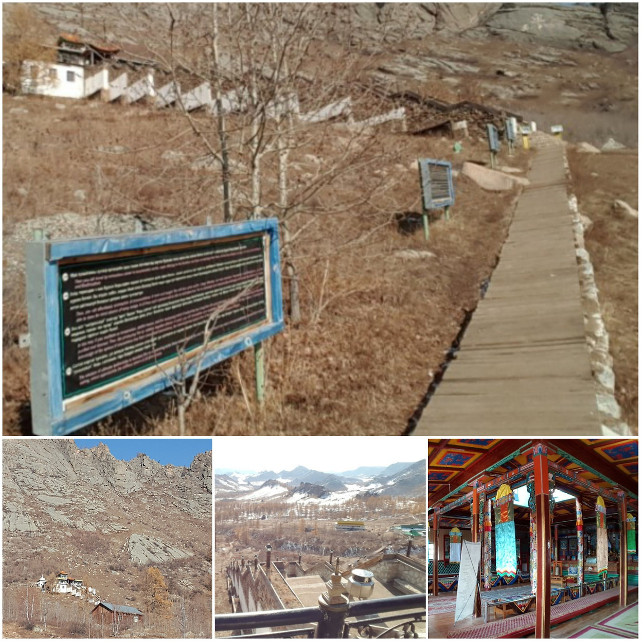 게르 한동을 4만 원에 빌리고, 8천 원에 구입한 앞다리가 있는 양 갈비 한 짝과 야채를 내주며 저녁 식사로 허르헉 요리를 부탁했다. 한국 돈 1만 원을 요구했다. 허르헉이 준비되는 동안 말을 타고 멀리 보이는 사원에 다녀왔다. 말 달리기라고 하기보다는 말 타고 걷기라는 표현이 옳겠다. 산 중턱에 위치한 사원에 오르는 길 옆에는 불경의 말씀과 교훈 한 마디씩 적은 입간판이 나열되어 있었다. 사원을 오르내리는 신도들에게 경고의 음성을 주고 있는 것이다.
