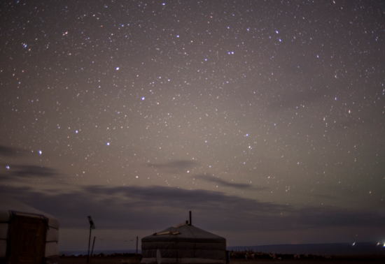 식사 후 다시 잠시 게르 안 침대에 누워 날이 어두워지기를 기다렸다. 7시 40분쯤에 게르에 나가 밤하늘을 쳐다봤다. 말 그대로 별이 쏟아지는 밤이었다. 몽골의 밤하늘에도 북두칠성이 북쪽 낮은 하늘에 떠 있었다. 흐드러지게 늘려져 있는 별무리. 별을 헤는 밤, 별이 흐르는 밤이다. 별들이 노래하는 듯하다. 머리 위에 있던 별이 밤하늘을 가로지르며 북쪽 하늘로 계속 흐르다가 잠시 멈춰 서더니 흐릿하게 빛을 잃어갔다. 별을 보기 위해 몽골에 간다는 말은 빈말이 아니다.