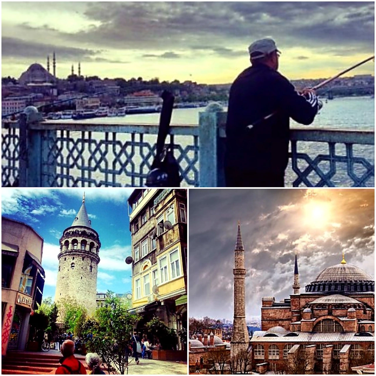 탁심 광장을 가기 위해 버스를 타고 가면서 이곳저곳 거리의 풍경을 볼 수 있었다. 멀리 보이는 블루 모스크, 새들이 날아다니는 갈라 탑, 다리 위에서 낚시를 즐기는 터키 아저씨들은 재미 삼아 고기를 낚아 그 자리에서 팔기도 하고 남으면 집에 가져가서 그날 저녁 반찬으로 먹는 여유로운 삶을 살아 있었다.
