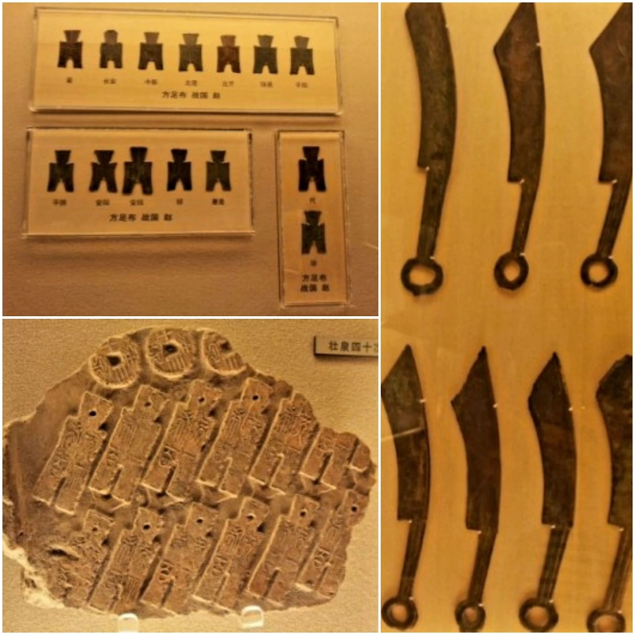 수렵생활을 하던 인류가 정착을 하게 되고, 물물 교환하던 시절에서 발전하면서 등장한 초기의 화폐들. 무협영화에서 음식 주문 후 식탁 위에 던지는 금/은 덩어리 화폐, 전국시대 조나라, 제나라에서 기원전에 사용했던 칼 모양의 돈들. 인류의 발전사를 보는 것 같은 느낌이 들었다.
