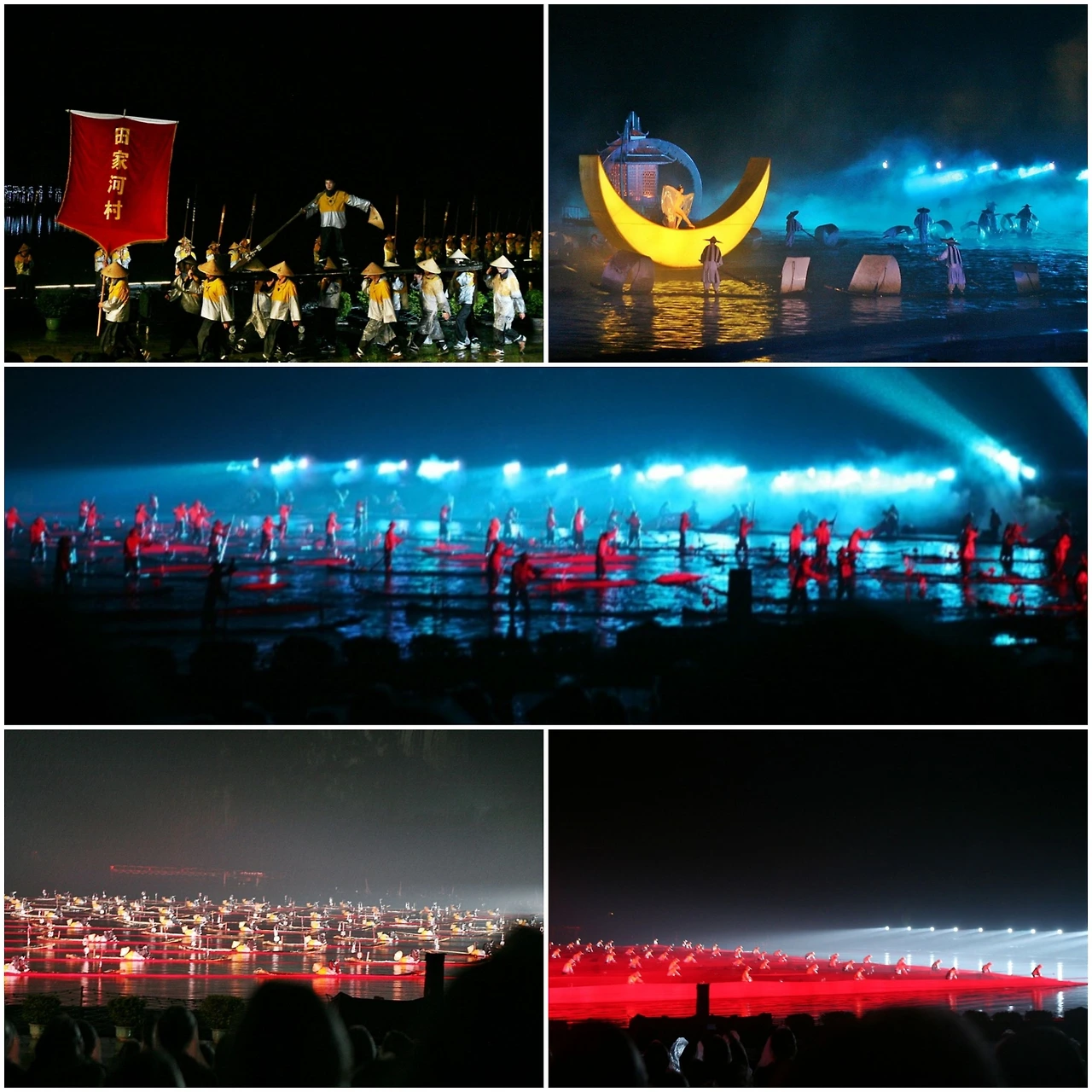 고개 한번 돌리면 그 사이에 뚫고 들어오는 중국인이 있으니 절대 경계를 늦추지 말라는 경고를 받고서 세계적 감독인 장예모가 연출한 인상유삼저를 보러 갔다. 관람 온 수 천명의 인파 속을 헤쳐나가 가장 맨 앞줄에 앉아 대형 산수실경 연출 쇼를 감상했다. 계림의 진경산수인 이경과 12개 주봉을 무대와 배경으로 삼아 600여 명의 출연진이 공연을 한다. 그들이 펼치는 꿈의 전경은 화려한 조명과 노래, 무용, 횃불 등의 기획과 연출력에서 중국의 대국적 기질과 장예모 감독의 놀라운 사상력을 다시 확인해 볼 수 있었다. 한 번에 3 천명의 관광객을 수용하고 1 년 내내 공연이 멈추지 않는다고 한다. 이 지역 주민들을 공연에 참가시킨 광서 소수민족의 경제사정에 크게 기여하는 완벽한 경기부양책이며, 중국 공연문화의 정수를 보여주는 예라 할 수 있겠다. 우리나라 경주나 제주 등에서도 대규모의 완벽한 공연을 기획하고 야간에 공연한다면, 관광객을 하루 더 그 지역에 머물게 함으로써 관광 수입이 배가 될 것이다. 지역 주민을 공연의 주인공으로 참석한다면 지역 경기도 활성화될 것이다. 좋은 것은 배우라고 했다. 언제쯤 우리나라에서도 보고 싶은 지역 문화 공연이 생겨날까?