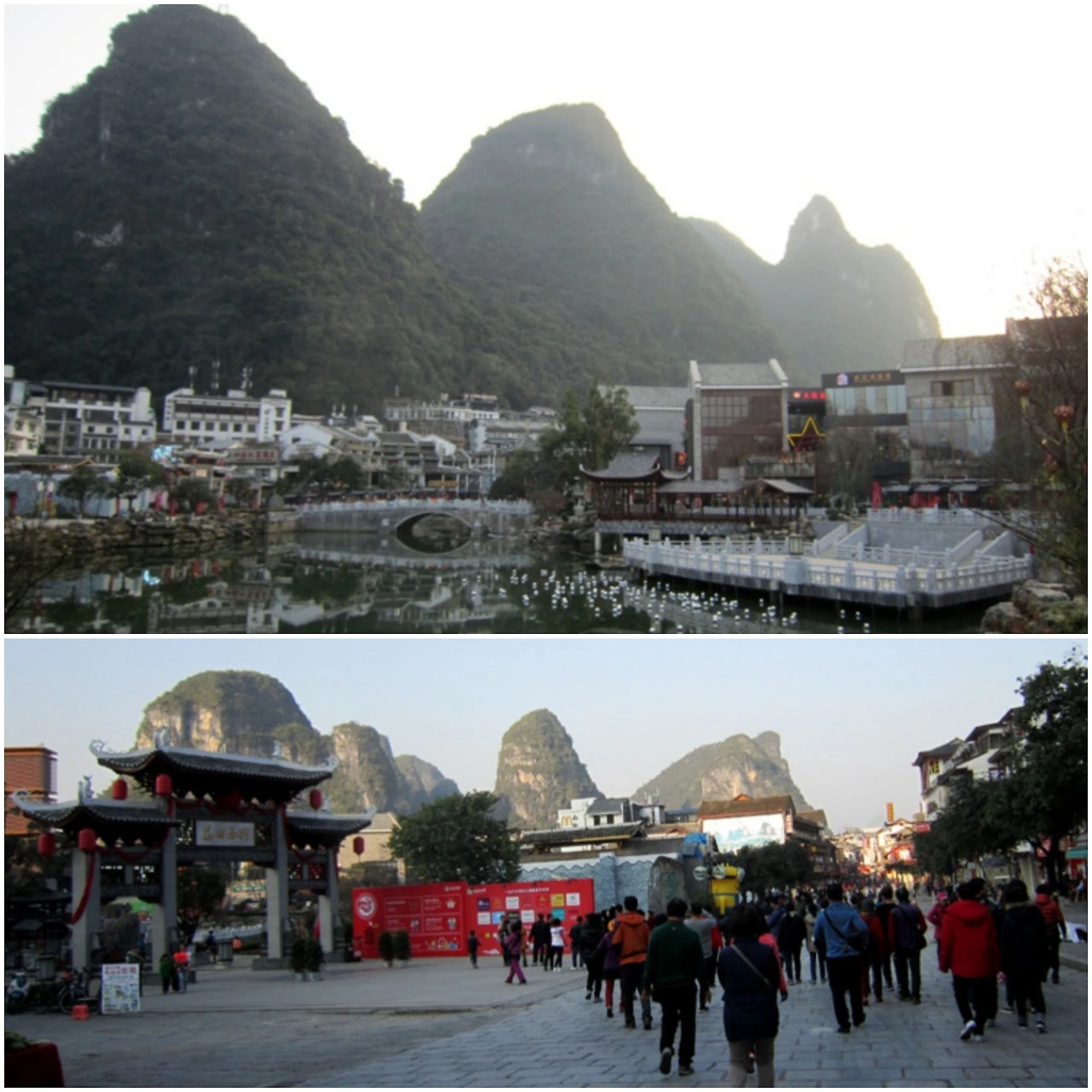 이 중에서 중국인의 상술과 현란한 속임술에 대해 말해 보겠다. 정양 보행거리에서 10위엔에 산 부채가 크고 견고하고 바람이 잘 이렀다. 동행자가 선물하면 좋겠다며 이강에서 뱃놀이 한 후 가게에 들려 부채를 둘러보았다. 주인은 '계림산수 천하갑'이라는 글귀가 새겨진 바람 잘이는 부채를 5위엔에 10개를 사겠다고 흥정하는 손님에게 처음에는 판매를 완강히 거부하더니만, 잠시 후 가게를 떠나려는 손님에게 다가와 그 값에 가져가라면서 다섯 개씩 포장된 부채 세트를 내놓았다. 두 세트를 산 관광객이 토종닭 백숙을 점심으로 먹으며 부채를 꺼내 펼쳐 보았더니 10위 엔하는 것과 달리 부채 재질이 비단천이 아닌 종이로 만들어진 것이었다. 달려가 환불을 청하니 언제 팔았냐는 듯이 외면했고, 결국 환불은 못하고 씩씩대며 가져갈 수밖에 없었다. 서가 재래시장에서도 비슷한 속임수가 재발되었다. 깎아 달라는 손님이 흥정을 실패하고 돌아서니, 나이 많아 보이는 장수가 다시 달려와 한국돈 3천 원에 부채 2개를 주고 갔다. 길을 걷던 관광객이 이번에 확인해 보니 한 개는 계림 경치와 문구가 새겨 있는데, 다른 하나는 무늬 하나 없는 맹탕 바람만 일으키는 부채이더라. 보여주는 것은 제대로 된 부채였지만 추가로 준 두 번째 부채는 짝퉁이었다. 중국에서는 왜소하고 나이 많은 할머니 상인에 대해 측은한 마음이 들어 도와주고 싶더라도, 가볍게 여기지 말고 철저히 눈으로 확인한 후에 흥정하고 값을 치러야 한다. 섣부른 사람이 중국이라는 강호에 나오면 내공이 깊은 중국 상인들에게 눈뜬 상태에서 코가 베이고 호주머니가 털려서 빈털터리가 되기 십상이다. 내상이 깊으면 한이 되어 두고두고 생각나는 법이다.