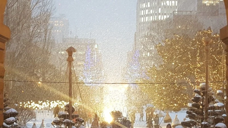 눈은 그치지 않았다. 밤이 되자 도시는 조명 빛으로 환상적인 경치를 연출했다. 흩날리는 함박눈과 나무를 감싼 다양한 색채로 빛나는 조명은 몽한적인 세상을 빚어냈다. 나는 한동안 환상의 세계에 빠져들었다.