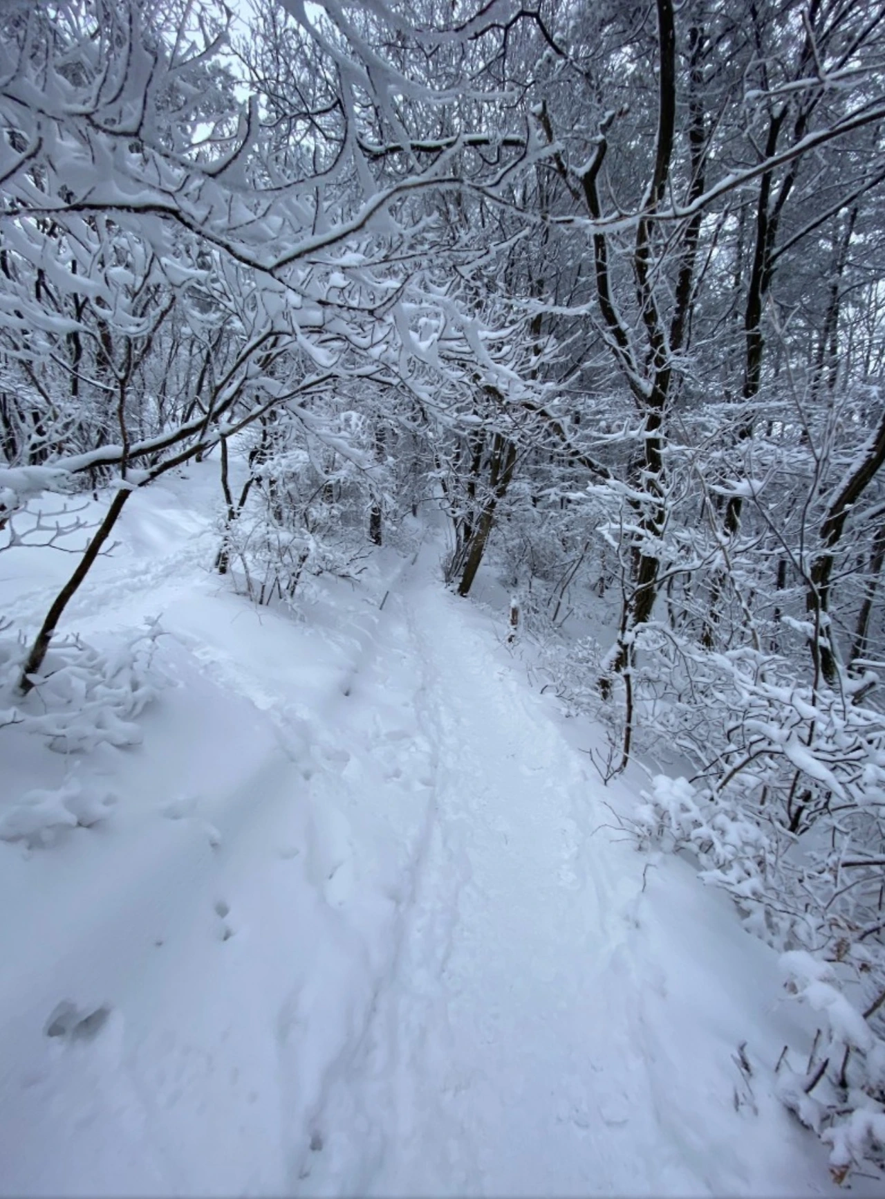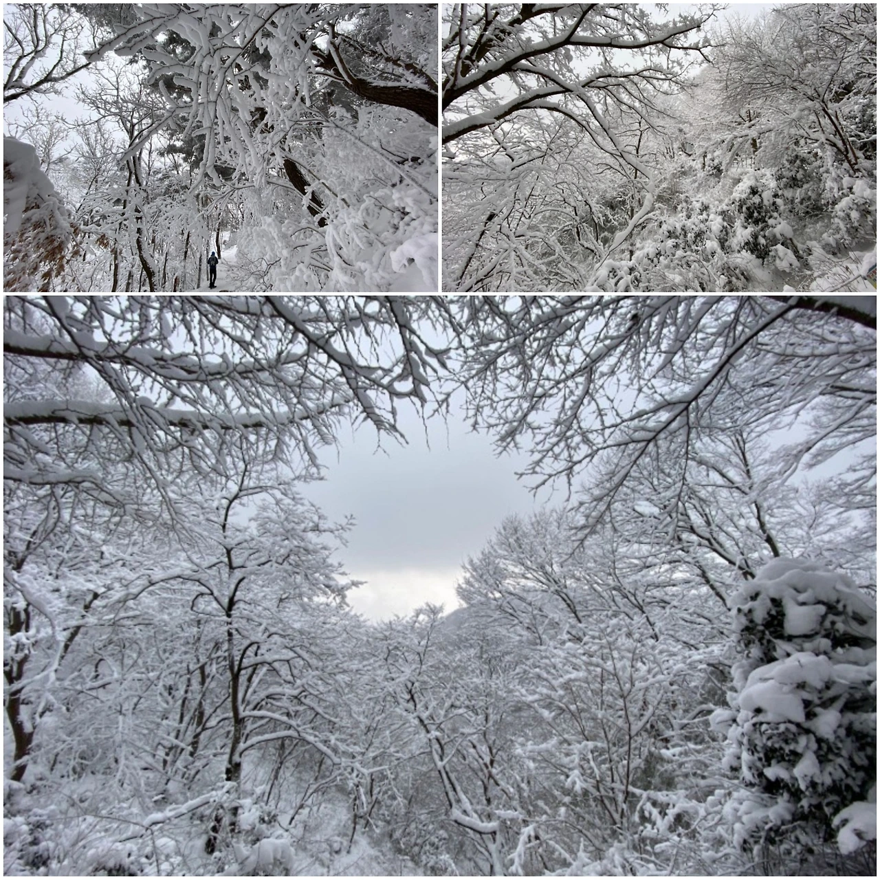 한참을 오르다가 뒤쳐진 일행을 기다리곤 했다. 추운 겨울임에도 땀으로 흥건한 얼굴에서 하얀 김이 피어올랐다. 쉬는 시간 잠시 둘러보는 설경은 아름답다 못해 황홀경에 빠지게 하는 묘한 귀한 풍경이다. 막 도착한 동료에게 쵸코렛을 나누어 주며 힘내서 걷자고 격려를 했다. 하지만 평소 운동이 부족하고, 조금씩 기력이 빠져가는 육신의 한계를 이길 수 없는 지인은 빠른 발걸음을 내딛지 못했다. 내게 먼저 올라가길 권했고, 나는 하얀 눈 속을 헤치며 걸음을 재촉했다.