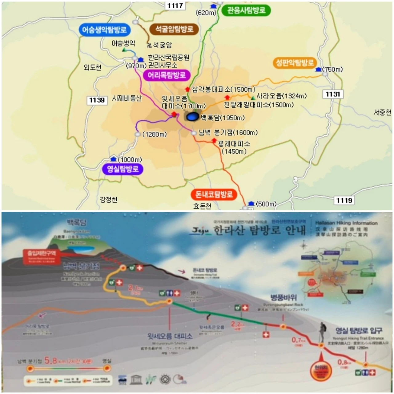 앞선 등반객을 제쳐가면서 혼자 부지런히 발걸음을 옮겨 윗세오름 대피소에 12시 전에 도착했다. 산장 지킴이에게 동료가 곧 도착하니 함께 정상에 오르게 해달라고 시간 말미를 구했다. 지인들의 늦은 도착에도 불구하고 한라산에 오를 수 있는 허가를 받았으나, 정상을 오른 후 지쳐버린 지인들이 안전하게 하산할 수 있을까? 하는 불안한 마음이 들었다. 오직 한라산 등반을 목적으로 벼루고 온 여행이지만 여건을 헤아리지 않고 강행할 수는 없는 일이다. '한라산 정상 백록담을 보는 것을 남겨 두어야 다음에 다시 제주도에 올 수 있다'는 말을 남기며 정상에 오르는 것을 포기하기로 했다. 아쉬움이 가득했다.
