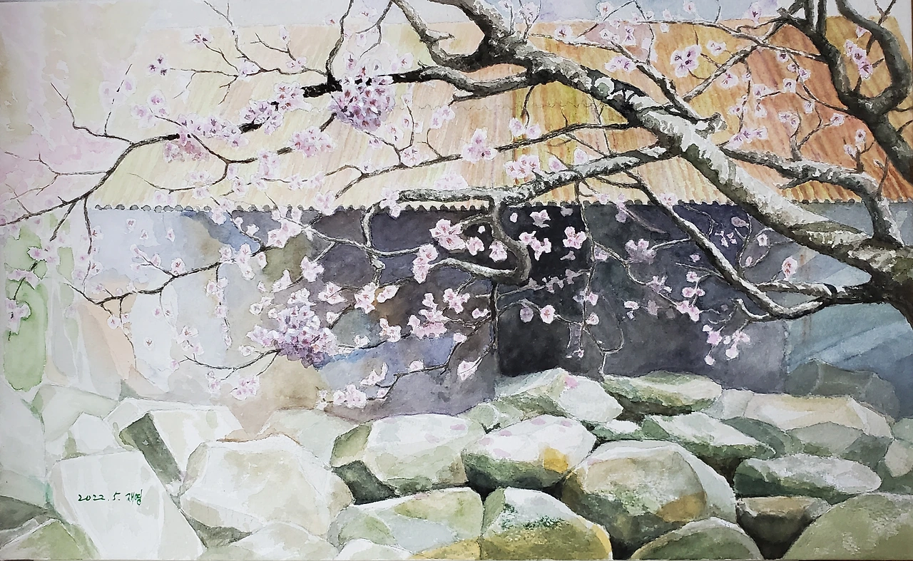 2022년 5월 24일 벚꽃이 있는 풍경 마무리하다.