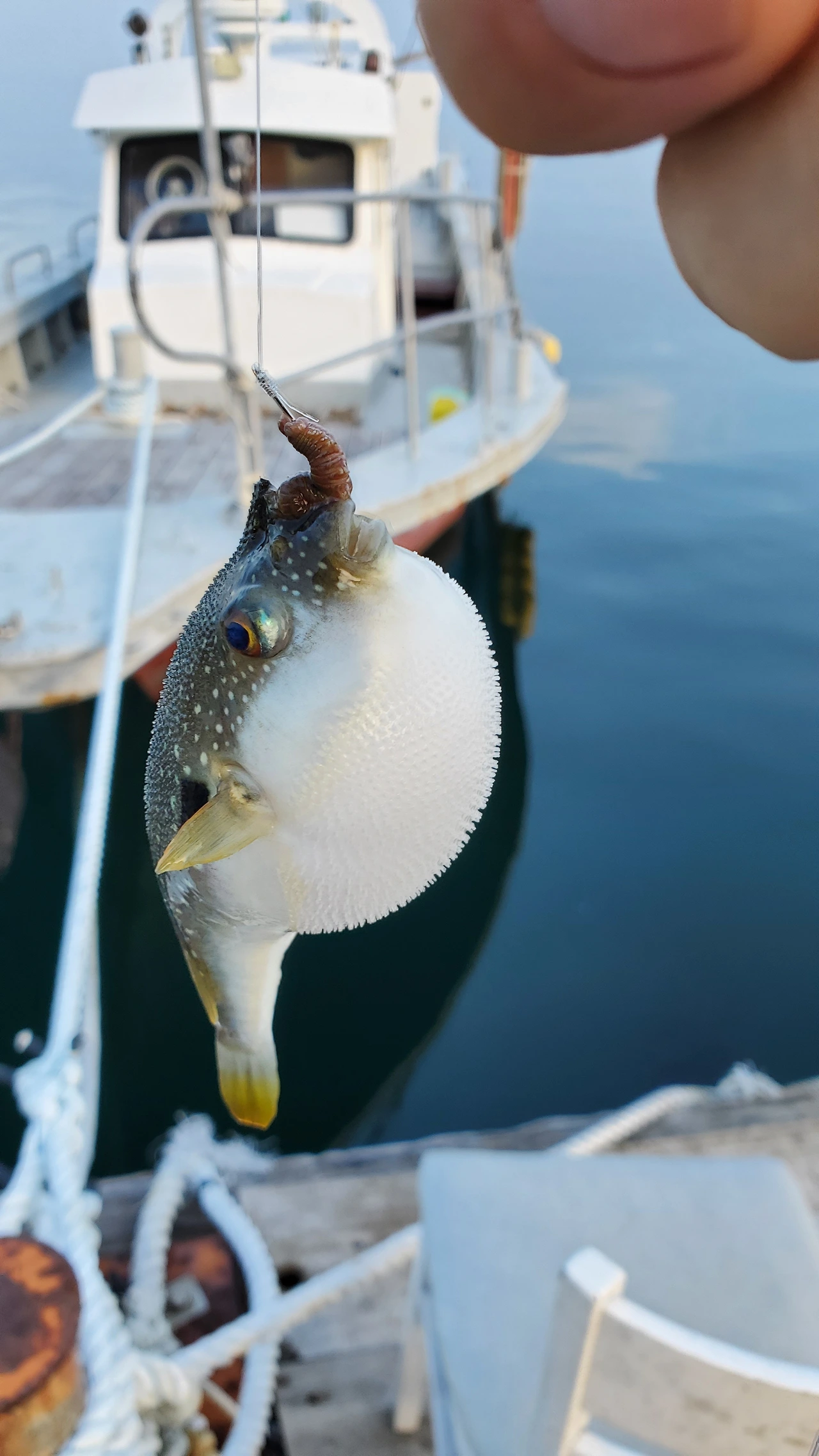 성가진 복어가 크기 자랑을 하려는 듯