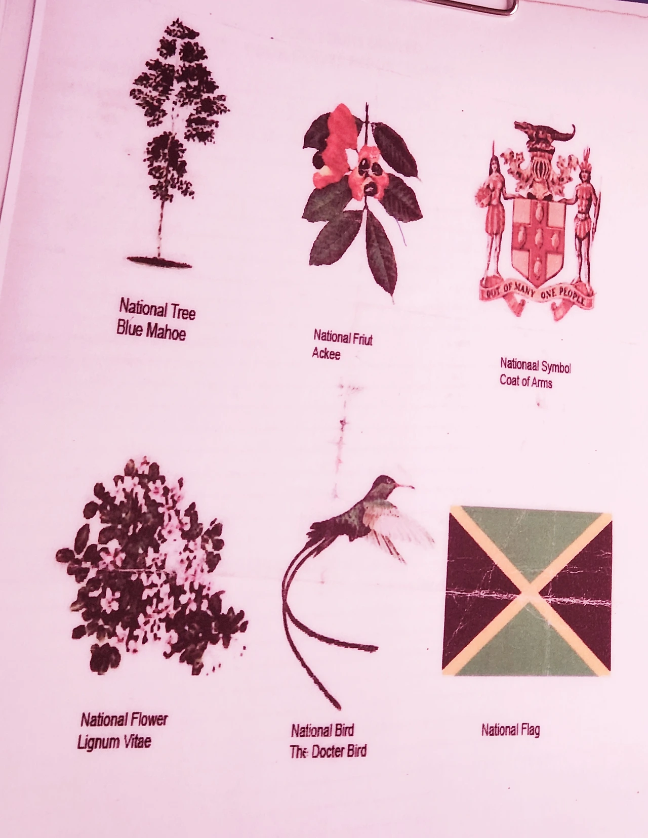 가이드가 보여준 사진을 통해 자메이카에 대해 조금 더 알게 되었다. 자메이카 국기를 이루는 색상인 초록, 노랑. 검은색은 범 아프리카 주의를 상징하는 것으로, 주민들 대다수를 차지하고 있는 아프리카 흑인 노예들의 후손임을 의미한다. 초록색은 섬의 우거진 초목을, 노란색은 황금빛 태양을, 검은색은 역경을 극복하기 위한 힘과 생기를 나타낸다. 국가의 상징들로 새, 나무, 열매, 꽃 등에 대해서도 설명을 들었다.