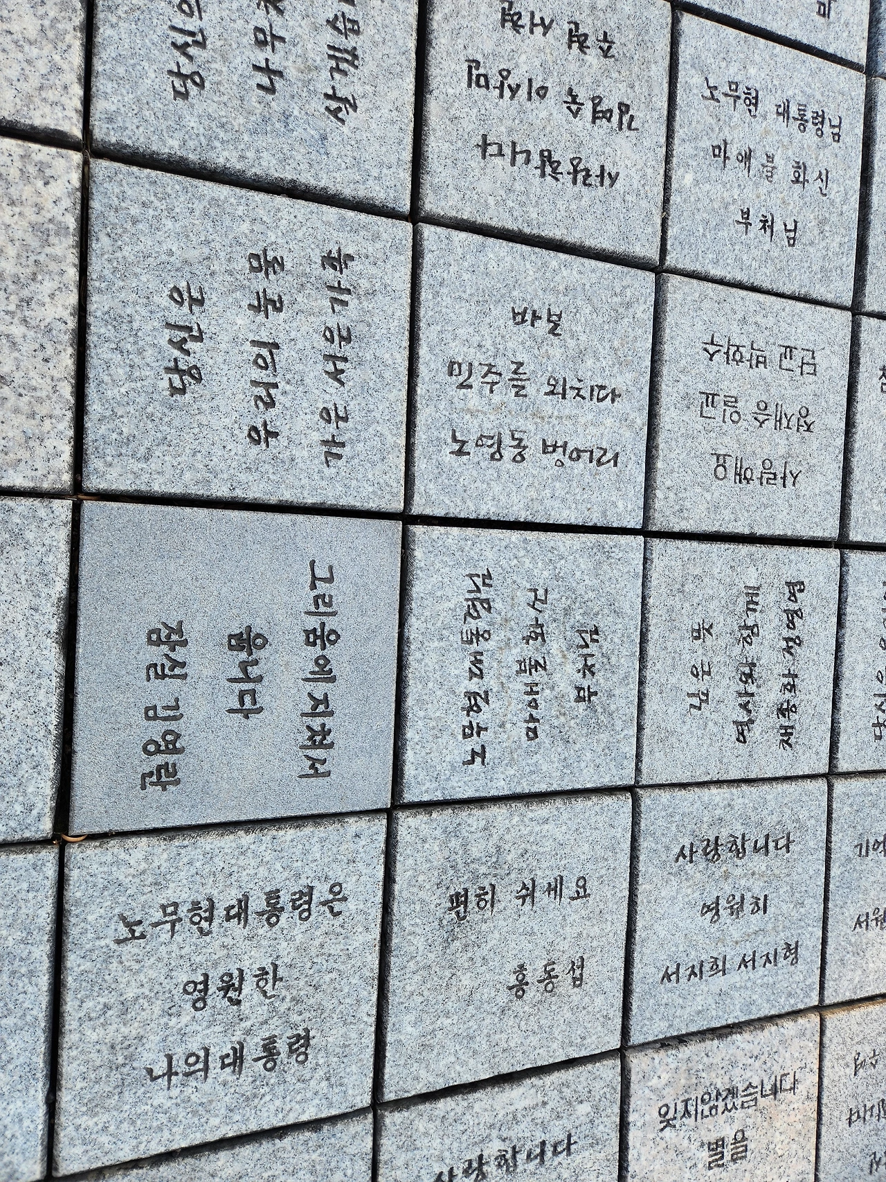 부엉이 바위밑 그분의 묘역에는 1만 5천여 개의 시민의 정성과 사랑이 담긴 박석이 펼쳐져 있다.