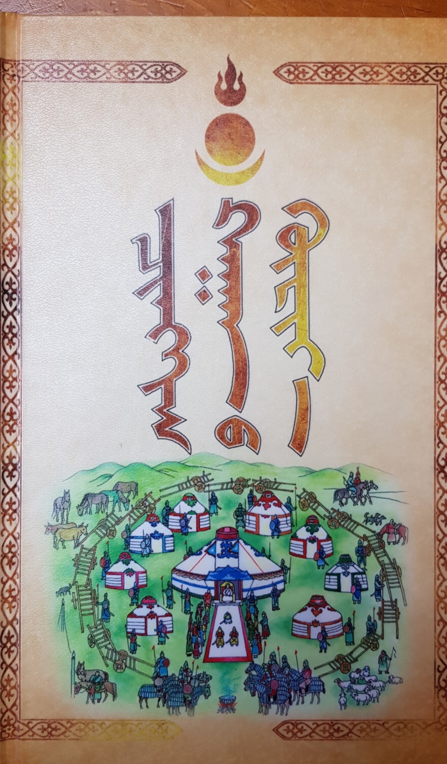 몇 해 전에 열린 아셈 동남아 정상 회의를 위해 조성된 칭기즈칸 캠프에 들렸다. 캠프 내 여기저기에 슬로건이 적힌 깃발이 바람에 휘날리고 있었다. 캠프 그림 위에 적힌 상형문자는 고대 몽골어이다. 행사 등에서 사용되는 상징어로 일반인도 떠듬떠듬 읽을 수 있다. 현재 몽골어는 러시아 알파벳을 사용하고 있는데 발음 방식은 완전히 다르다.