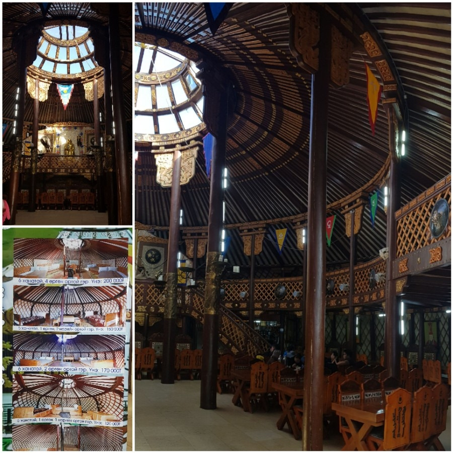 유난히도 큰 게르 내부 구조. 큰 식당으로 사용되고 있다.