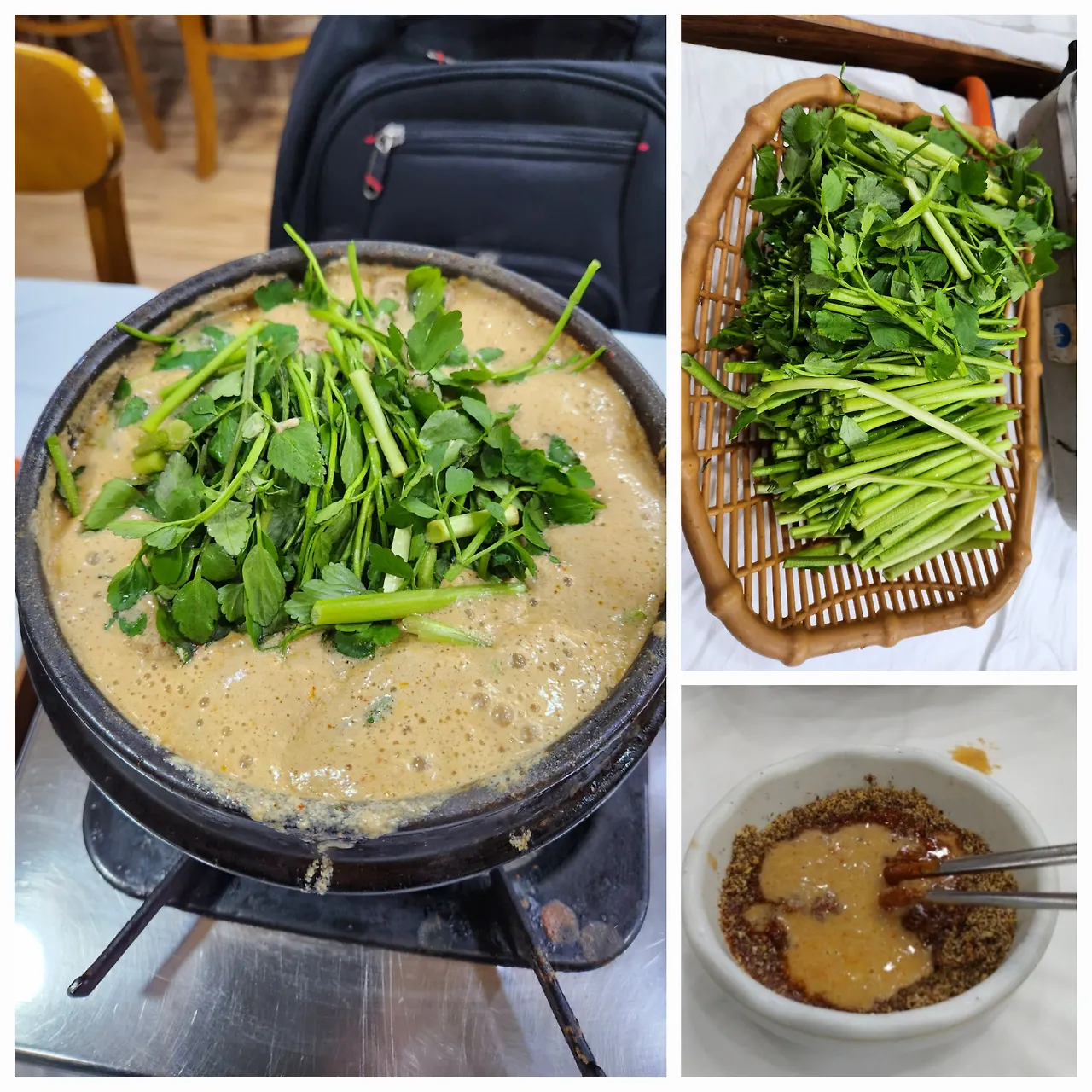 탕이 끓기 시작해서 추가로 주문한 미나리를 더 얹었다.