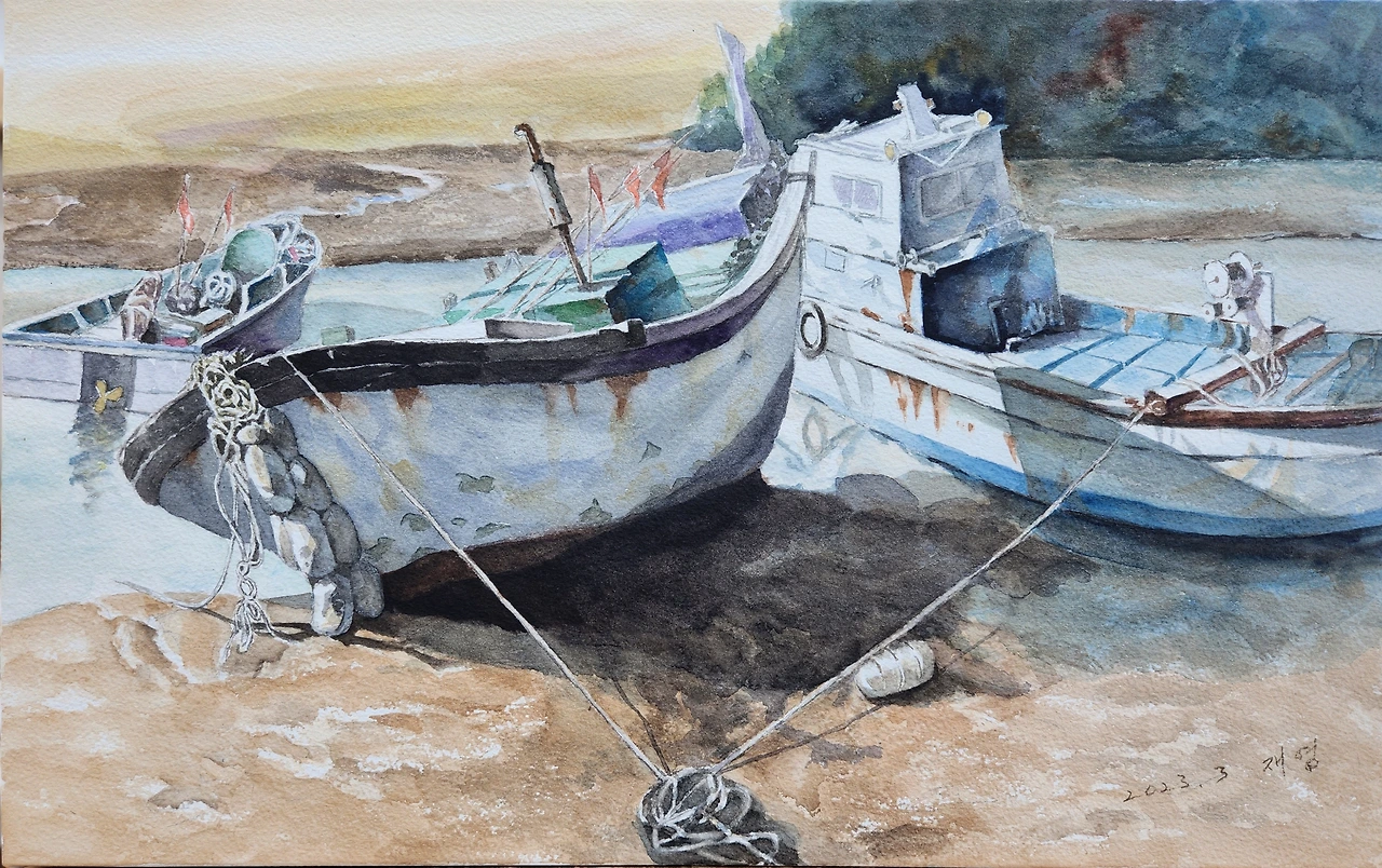 화가는 그렇게 잠시 정박한 배를 화폭에 담고
