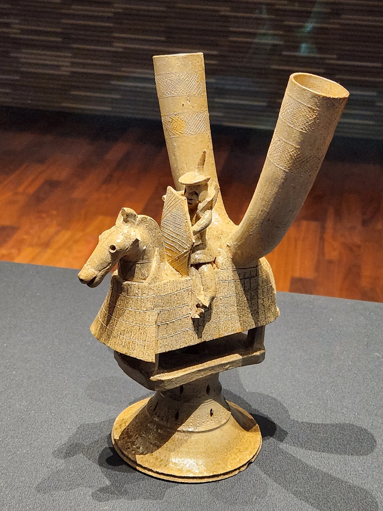 도기 기마인물형 뿔잔은 고대 무사의 당당한 모습을 보여주고 있었다.
