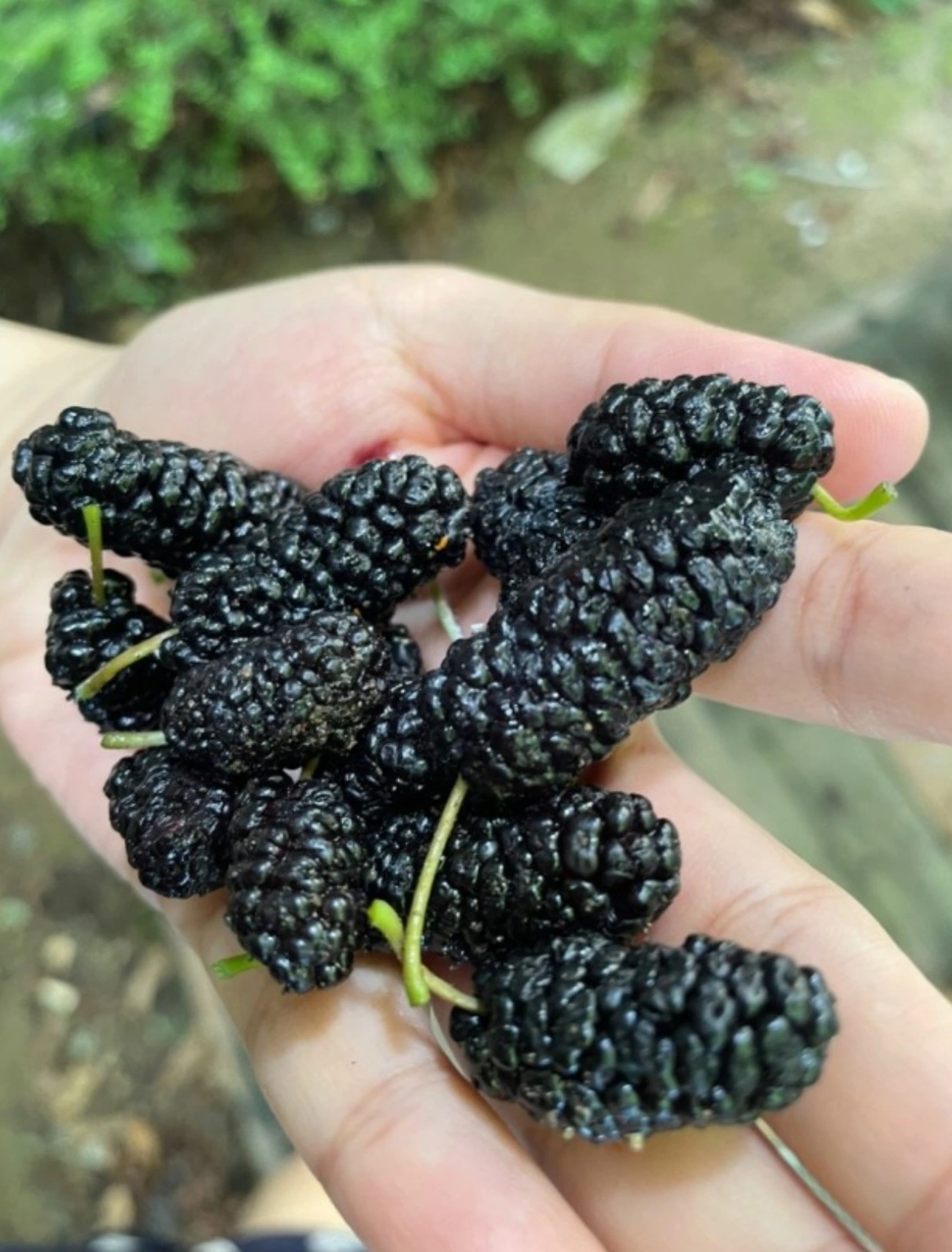 잘 익은 오디가 손 안으로 떨어진다.