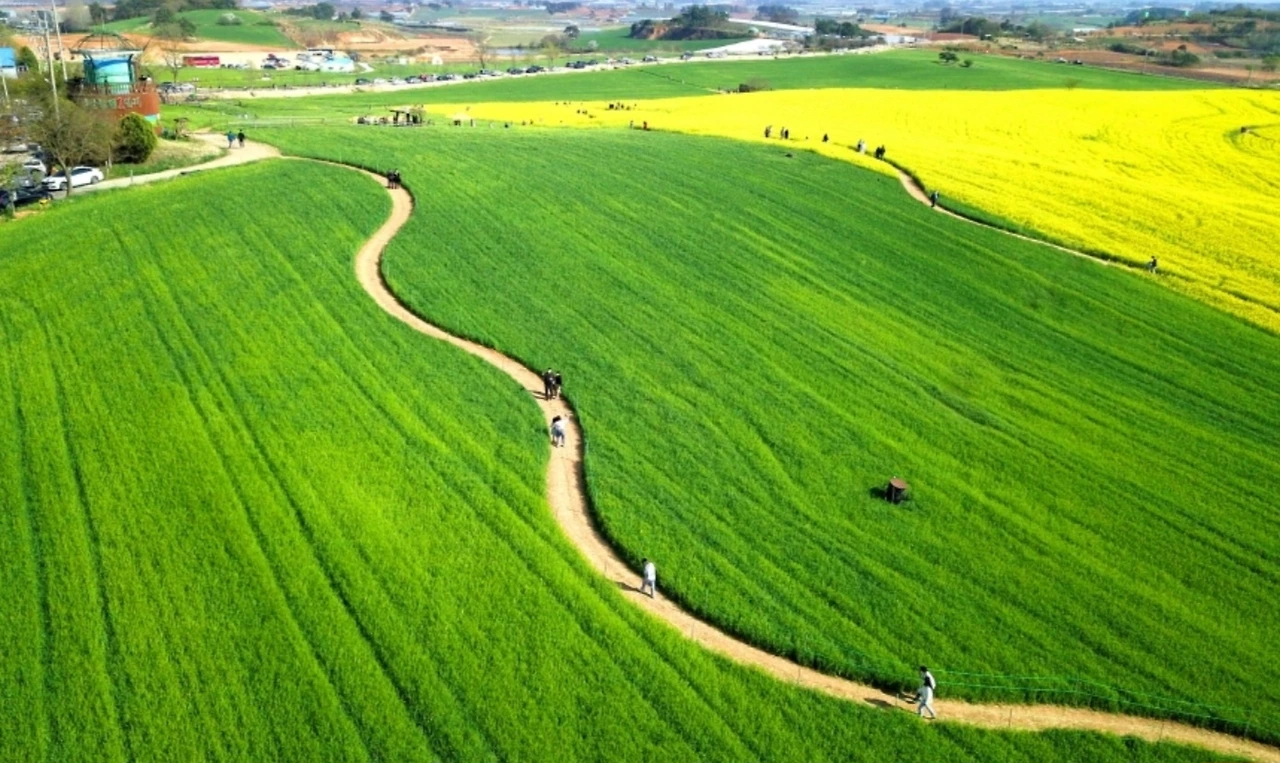 이른 봄의 청보리 물결과 5월 중순의 황금빛 들판이 보기에 좋다고 하니