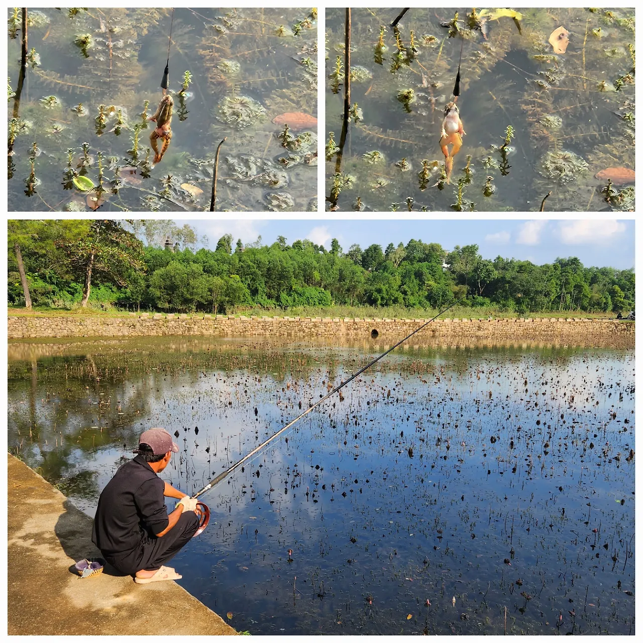 개구리를 낚는 것은 아닐 것이고, 개구리를 미끼로 메기나 가물치 정도를 잡는 것일 것이다.