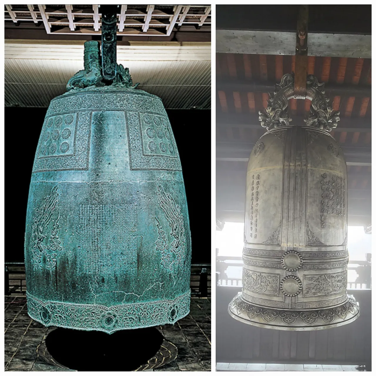 왼쪽은 경주 박물관이 소장하고 있는 에밀레종, 오른쪽은 다낭 바나힐 사원에 설치된 베트남 종