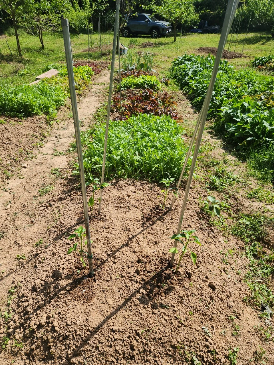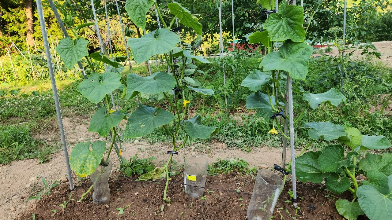 늦봄에 호박, 오이, 토마토 모종을 사서 심었다.