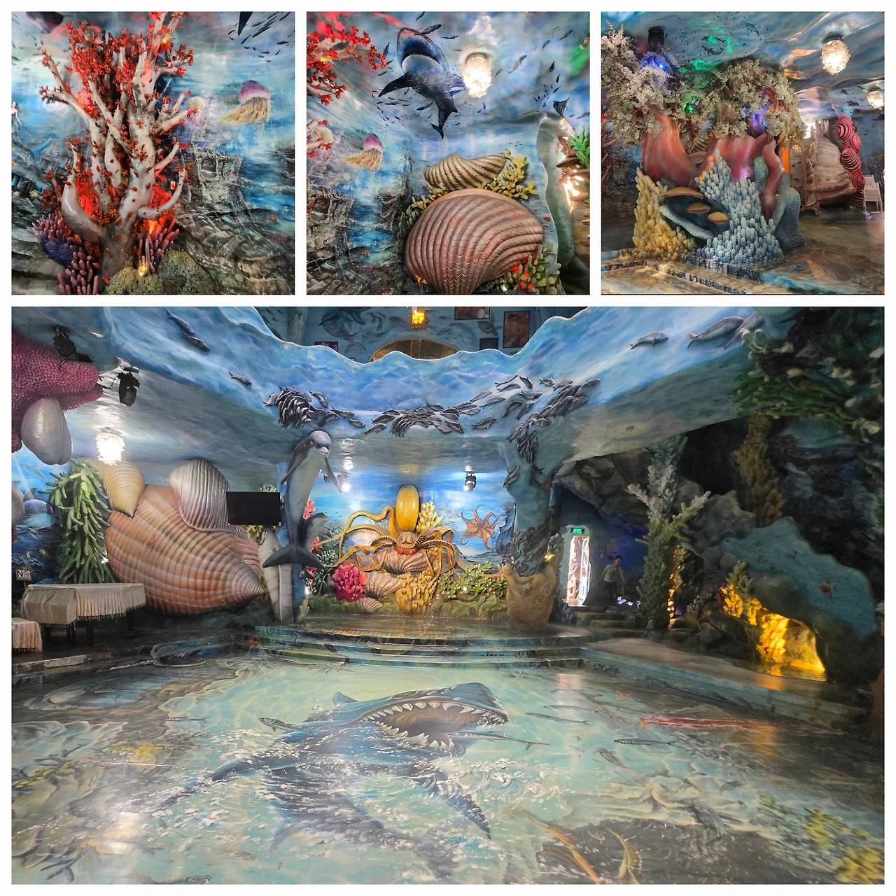 바닷속 세계, 거미줄, 실타래같이 얽힌 나무넝쿨, 괴이한 조각물,