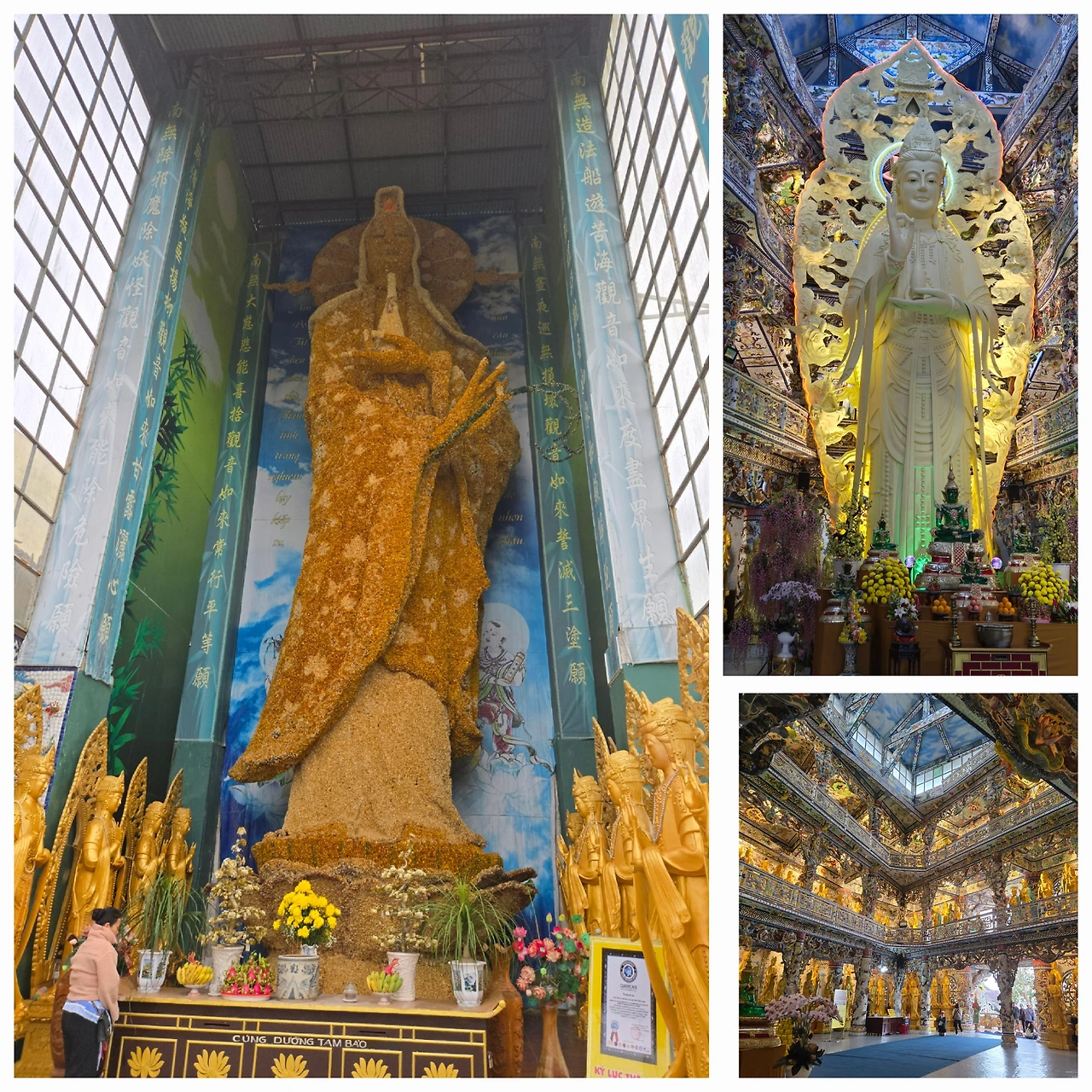 사원 부지에는 34m 높이의 7층 종탑이 세워져 있고 두 분의 관세음보살을 모셔져 있는데