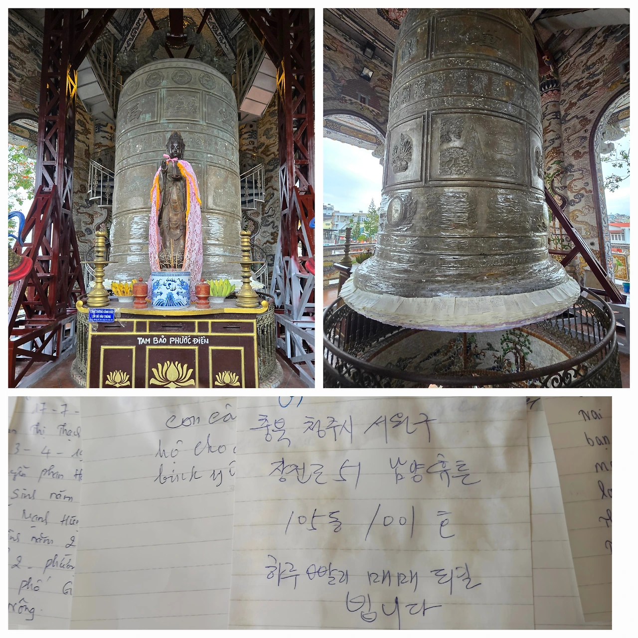 종의 테두리 부근에는 신자들이 소원을 비는 글들이 붙어 있는데