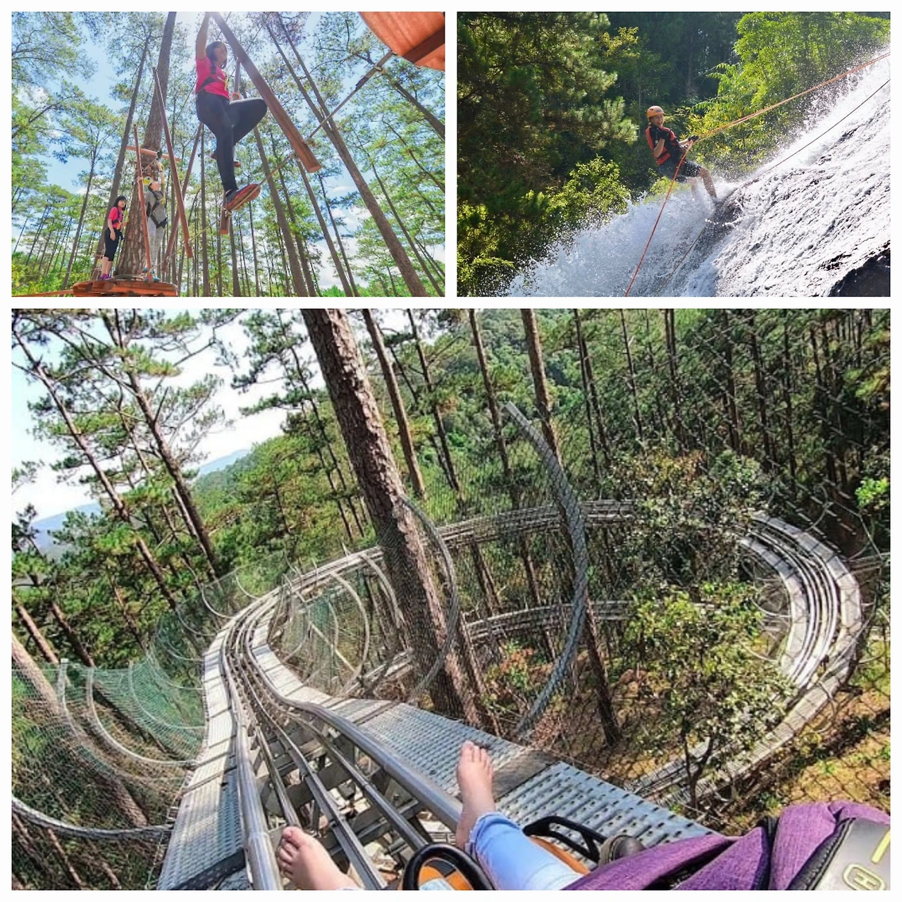 롤러코스터를 가미한 루지, 짚라인과 보조선을 잡고 외줄 로프 위를 걷기,