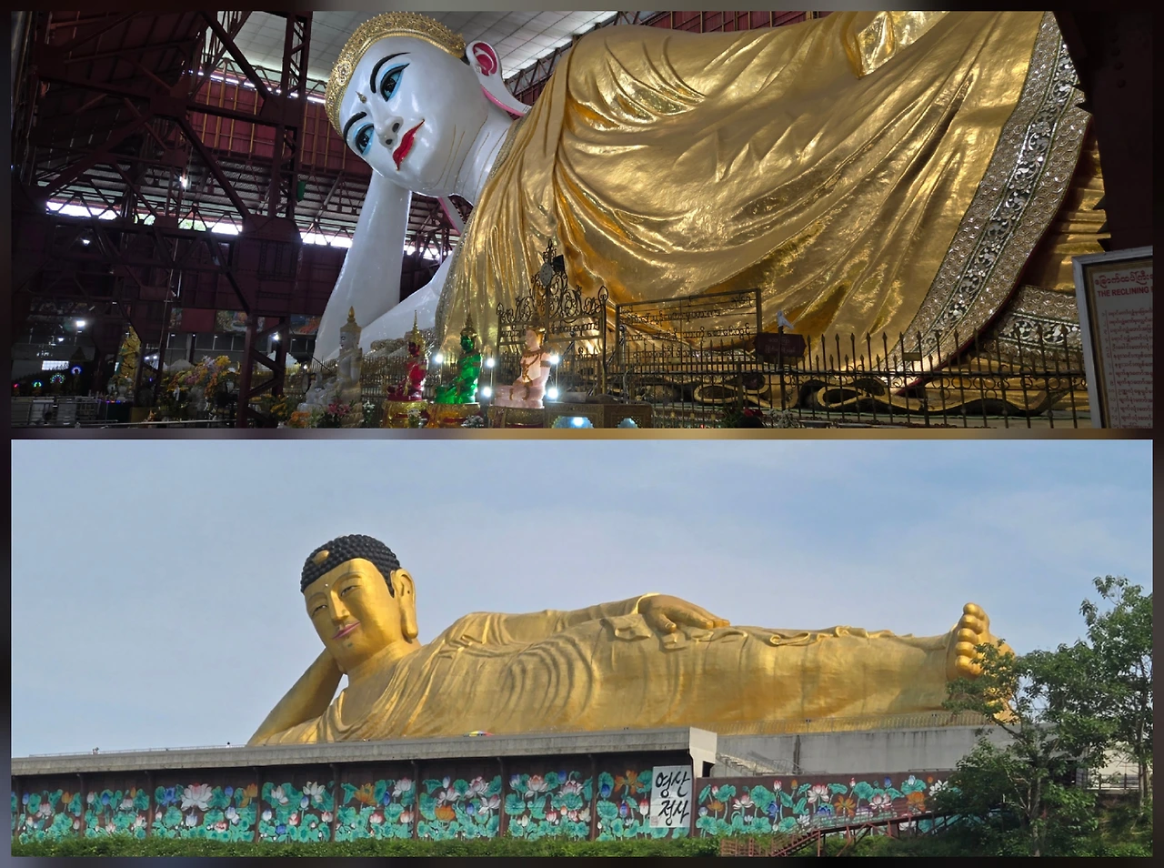 전설에 따라 만들어진 열반상으로 동남아에서 자주 볼 수 있는 불상이다.