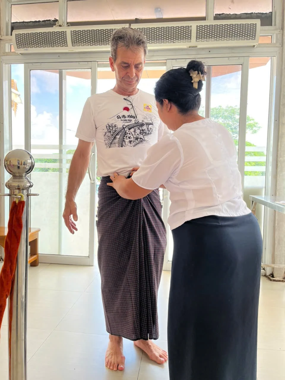 2.5만 짝 입장료와 미얀마 남자들의 전통 의상, 론지를 빌려 주는 댓가로 1만 짝을 추가로 지불했다.