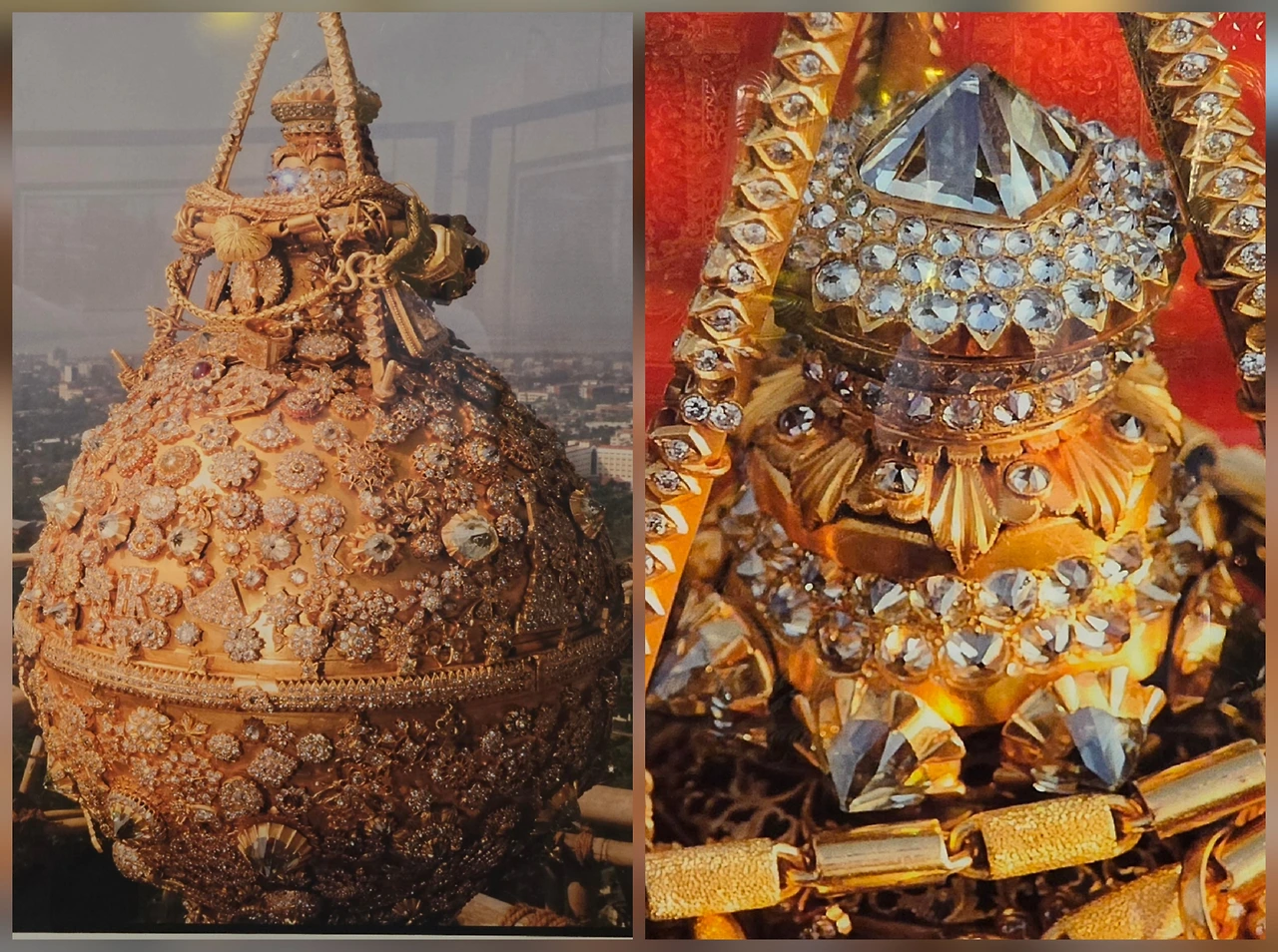 여러 왕의 보시와 기증으로 모인 6만 kg의 금, 수천 개의 루비와 다이아몬드로 파고다가 장식되었고