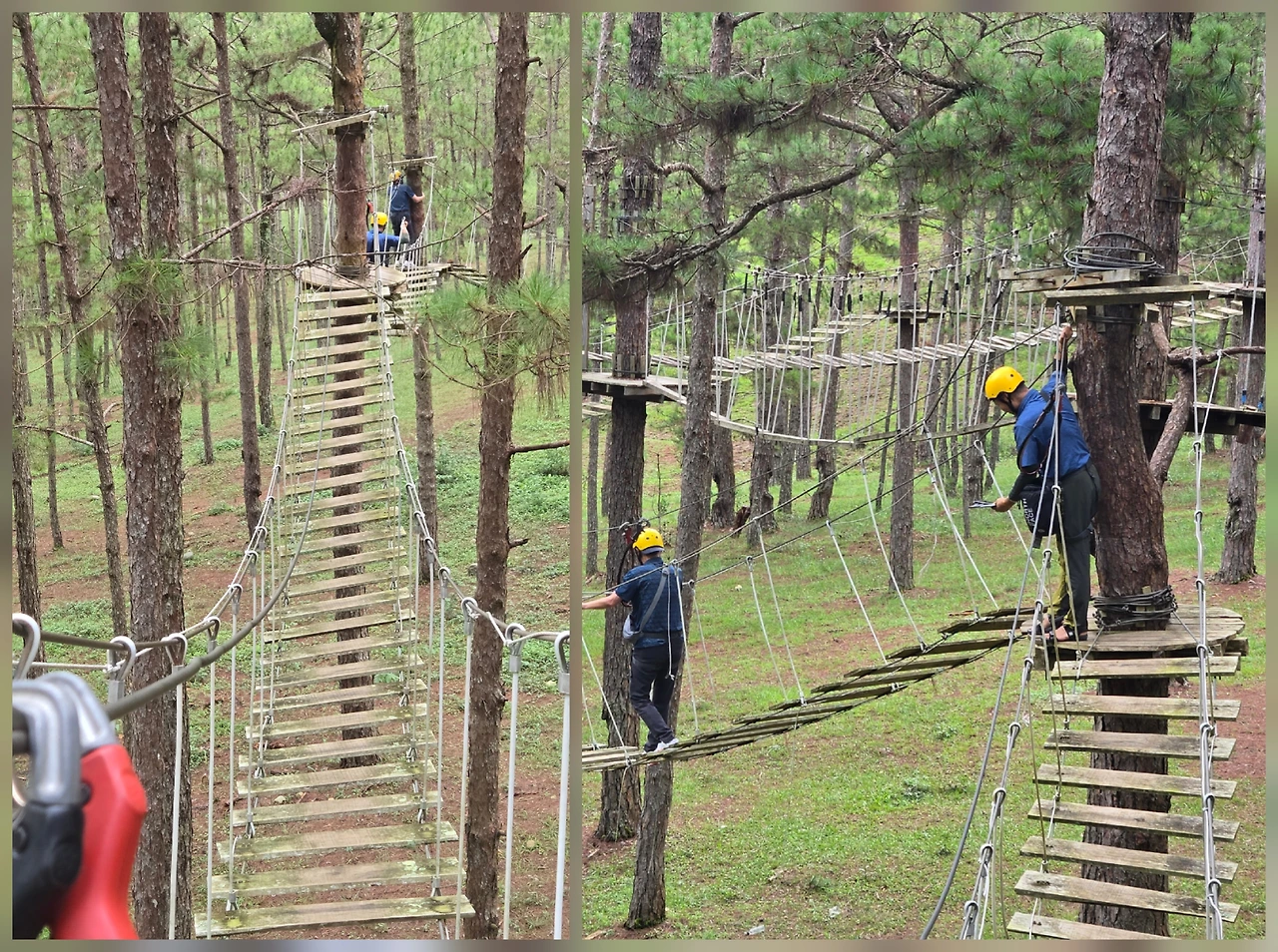 나무 간 로프가 20개쯤 되고 건너야 할 장애물 형태가 각기 다르니 집중력을 가지고 걸어야 한다.