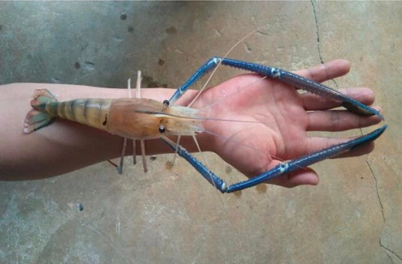 마침내 민물 새우 중 가장 크다고 하는 징거미새우 한 마리를 끌어올렸다.