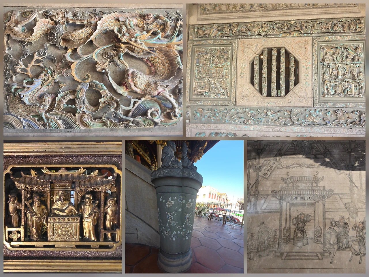 정교한 목공예, 석조조각, 지붕의 화려한 장식과 다양한 벽화 등 장엄하고 웅장한