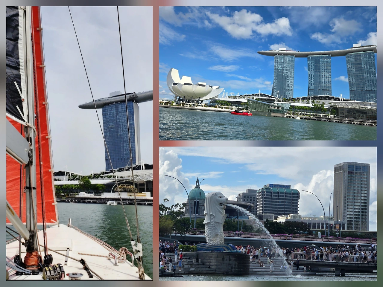 마리나 베이 샌즈와 머라이언 파크사이의 바다를 가르는 동안