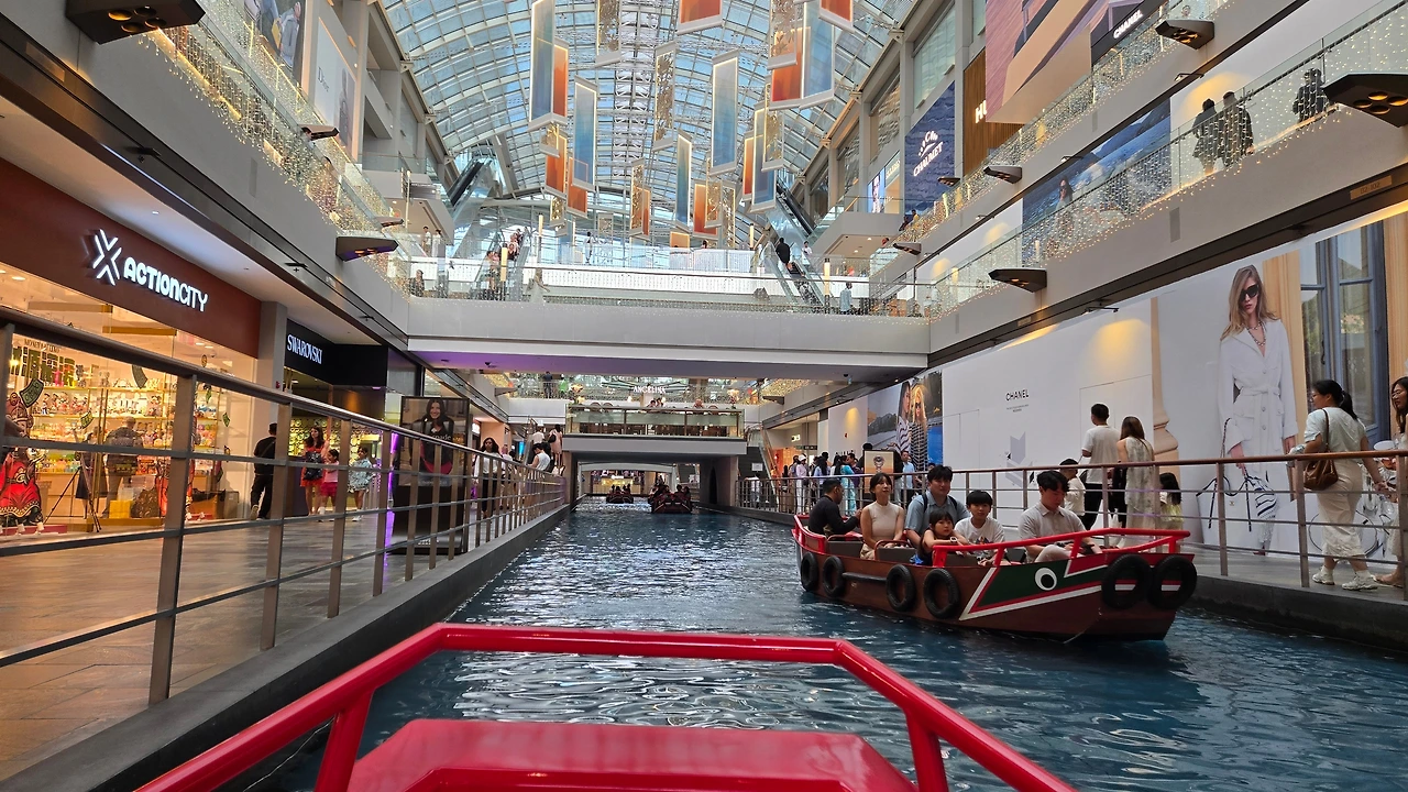 무료로 쇼핑몰 내 인공 수로에 띄운 보트에 몸을 실었다.