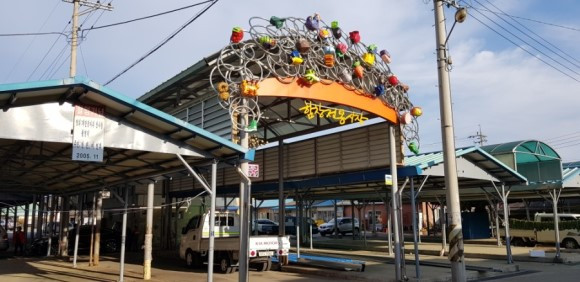 지붕과 콘크리트 바닥을 갖춘 아케이드로 변한 함창 전통시장