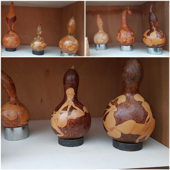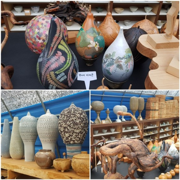 화려한 도안의 박공예, 특별한 기법의 섬세한 도자기, 인두로 지져 얼룩무늬를 넣은 괴목. 천재적 예술가가 수집한 미술품들이다..