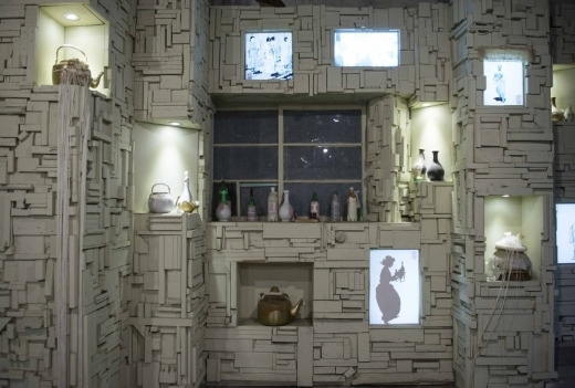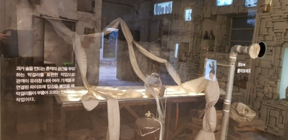 과거 술을 만드는 흔적의 공간을 부유하는 막걸리로 표현