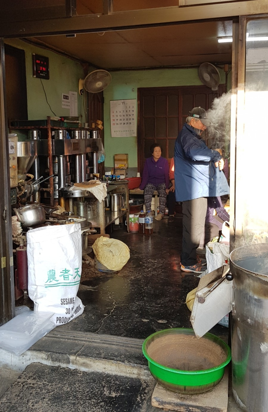 옛 장터 한 모퉁이에서 여전히 참기름을 짜고 있다. 낚시 미끼로나 쓰이는 들깨 깻묵도 그 시절엔 좋은 간식거리였다.