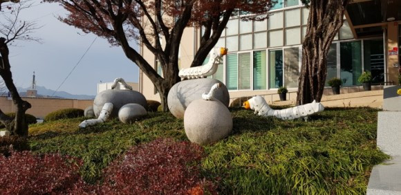 누에고치와 명주실로 마을의 화합과 미래가치를 표현한 함창의 상징물