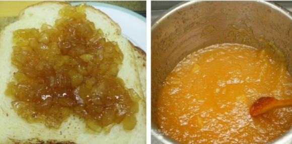 사과잼도 만들어 보았다. 아버지 제사를 모시고 돌아오는 길에 누이가 주는 사과를 냉장실에 넣으려고 보니 사과가 많이 남아 있었다. 단맛이 강한 여러 개의 감홍이 썩어 있었다. 썩은 부분을 도려나고 작은 깍두기 모양으로 잘라 약한 불위에 올려놓았다. 깍둑 사과 위에 누런 설탕을 수북이 붓고 뚜껑을 닫아 중불 위에 한 30분을 둔다. 사과에서 물이 배어 나와 끓기 시작한다. 숟가락으로 저어 익지 않은 사과를 냄비 아랫부분으로 밀어 넣는다. 이때쯤에 계피 가루 한 숟가락 넣으면 향긋하고 맛 좋은 사과잼을 얻을 수 있다. 제법 흥건한 사과즙 위에 깍둑 사과가 둥둥 떠서 끓고 있으면 뚜껑을 열어 둔다. 눍지 않도록 숟가락으로 휘휘 젖는다. 사과즙이 졸아 들고 깍둑 사과가 갈색으로 변하면 쨈이 완성된 것이다. 사과잼의 당도는 취향에 따라 설탕량을 조정하면 된다. 식빵 위에 쨈을 올려 먹어 보니 맛이 좋았다. 사과는 당도가 높은 편이니 맛을 봐가면서 설탕량을 조절하는 것이 좋다. 비빔밥 위에 얹는 고추장을 만들 때 설탕 대신 사과잼을 넣었더니 감칠맛이 흘씬 더해졌다. 특히 계피 향이 입맛을 돋군다.