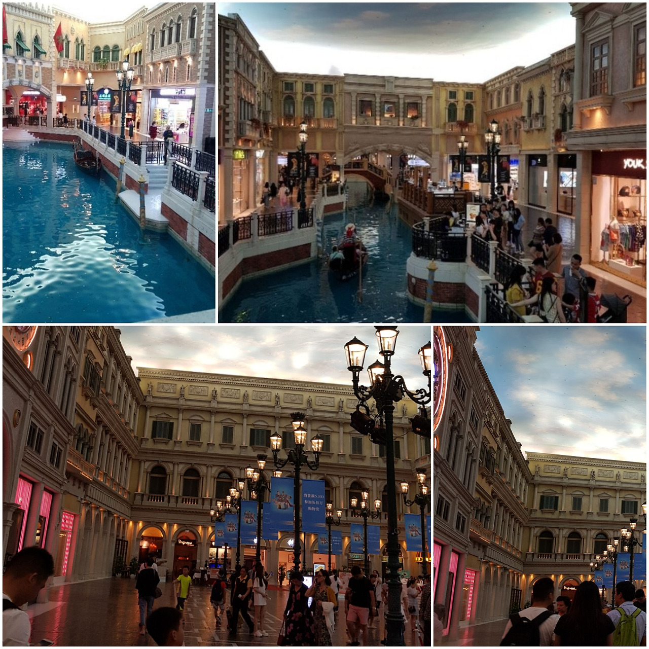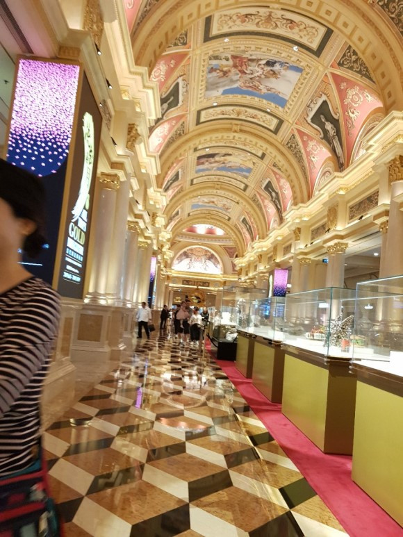 베네치안 호텔은 마카오에서 가장 크고 화려한 호텔이다. 출입구는 유럽 황실을 걷는 듯 착각할 정도로 화려하게 장식되어 있다. 천장에는 유화 그림들로 채워져 있고 복도엔 귀금속으로 진열되어 있다. 일층 카지노 홀이 둘로 나눠져 있는데 그 크기를 한정할 수 없을 정도로 넓어 보인다. 4층은 명품 가게를 유치했다. 베네치안 이름에 어울리도록 호텔 한 층을 이탈리아 베네치아처럼 꾸몄다. 인위적으로 조성된 청명한 하늘이 자연스러워 보인다. 건물의 가게들은 전부 명품을 판다. 돈을 따서 명품을 사는 사람들이 과연 몇 명이나 될까? 돈 많은 중국인을 위한 명품거리인데, 일반인들이 '돈을 따서 명품을 사겠다'는 착각을 불러일으켜 카지노를 찾아오게 만드는 상술로 보인다.