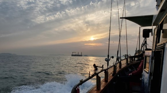 오후 출발하는 선상낚시가 바다를 가르며 달려갔다.
