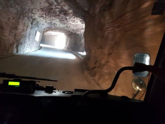 암반을 뚫어 길을 내고, 조명 대신 큰 환기통을 만들어 빛이 들러 오게 만들었다.