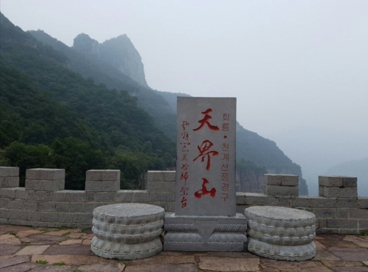 천계산 입구에서 버스를 갈아타고 가파른 도로를 꼬불꼬불 올라가다 도중에 공사로 길이 막혀 차에서 내려야 했다. 한 30분을 걸어 올라갔는데 차도인데도 어찌나 가파른지 숨이 막히고 땀이 줄줄 흘러내렸다. 버스 아니면 어떻게 이 산에 오를 수 있을까? 사회주의라 시민들 저항 없이 산길을 내고 더러 케이블카도 설치할 수 있었을 것이다. 우리나라에선 어림도 없을 것이다. 덕분에 명산지를 쉽게 오르고 눈이 호강한다는 소문이 외국까지 퍼져 관광객이 넘쳐나고, 관광 가이드들의 주머니를 불룩하게 만들어 주었다. 매표소에서 입장료가 80위안이라는 것이 확인되었다. 조선족 가이드는 길을 안내하고 설명하는 대가로 무려 5배를 부른다. 80달러에 관광객을 퍼 날랐다. 뻔히 알지만 가이드 없이는 관광할 수 없는 구조라 울며 겨자 먹기로 동참할 수밖에 없었다.