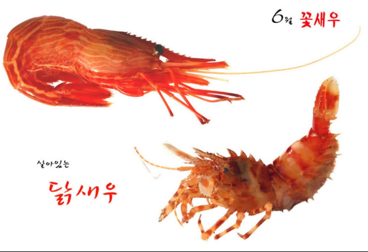 닭새우, 꽃새우가 독도 인근 해저 300미터에서 나온다고 해서 독도새우라고 통칭한다. 독도새우는 트럼프 방한때도 식단에 올라갔다.